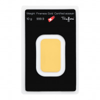 Zlatý investiční slitek o váze 10g má k hmotnosti kovu relativně vyšší ražební náklady. Je proto vhodný především jako dárek nebo originální propagační předmět.